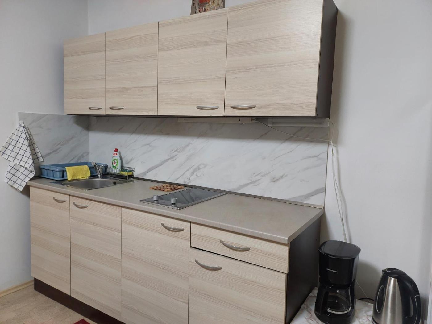 Apartment. Boasting a private entrance, this apartment comes with 1 living room, 1 separate bedroom and 1 bathroom with a bath and a shower. Guests can make meals in the kitchen that features a stovetop, a refrigerator, kitchenware and a microwave. The apartment features a washing machine, soundproof walls, a tea and coffee maker, a flat-screen TV with satellite channels, as well as mountain views. The unit has 2 beds.