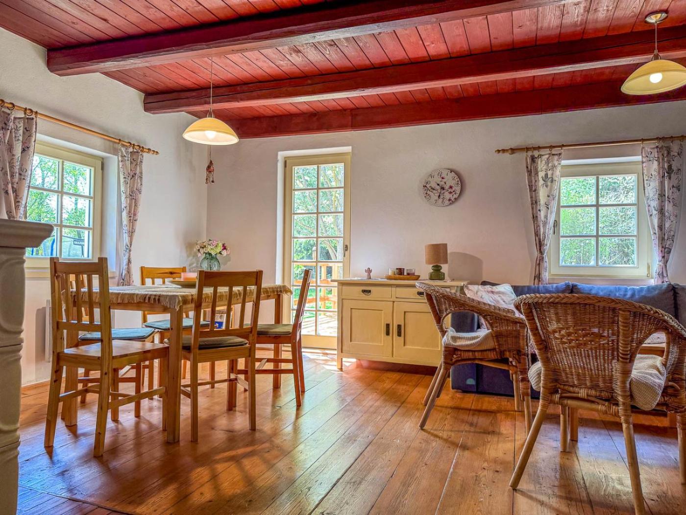The holiday home features 2 bedrooms, 1 bathroom, bed linen, towels, a flat-screen TV with satellite channels, a dining area, a fully equipped kitchen, and a terrace with garden views. The parquet floors, fireplace and peaceful vibe add to the ambience of the room. The property has an outdoor dining area.