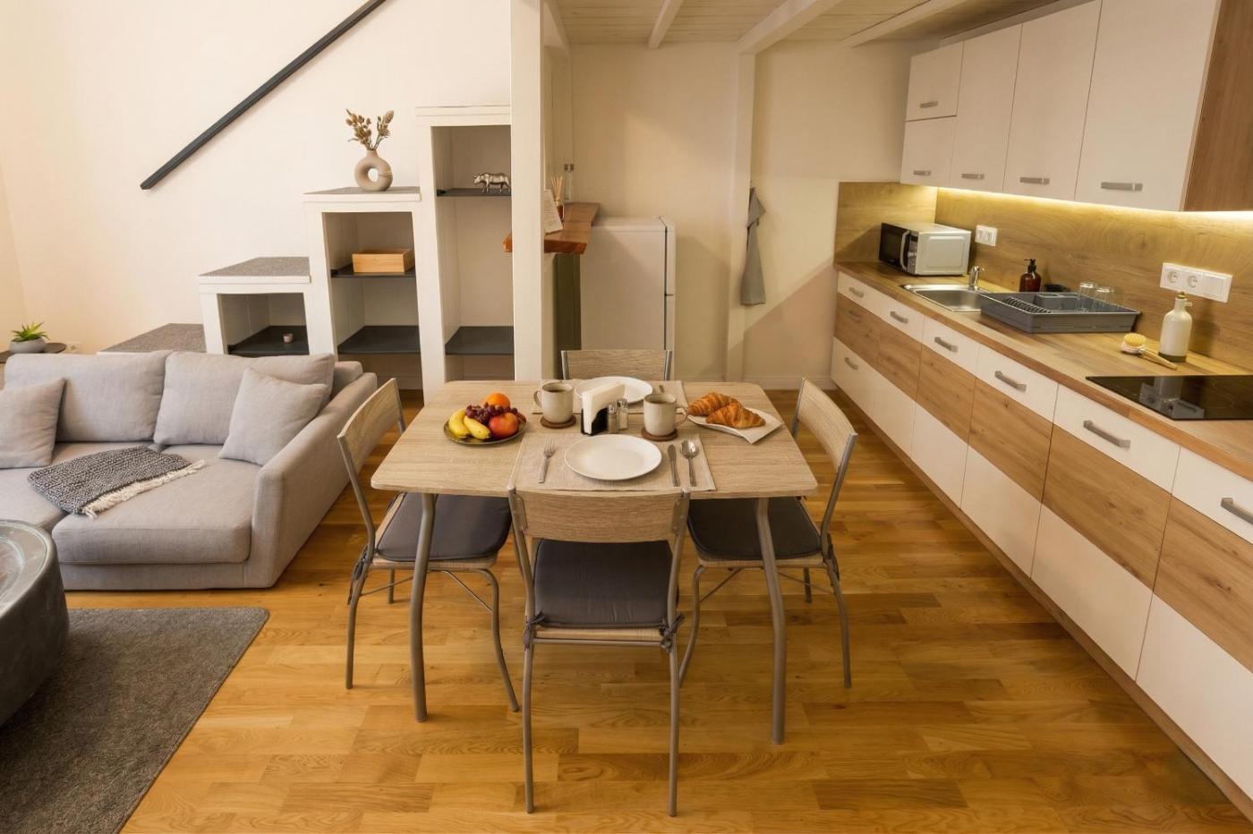 One-Bedroom Apartment. Featuring a private entrance, this apartment also comprises 1 bedroom, a seating area and 1 bathroom with a shower and a hairdryer. Meals can be prepared in the kitchen, which comes with a stovetop, a refrigerator, kitchenware and a microwave. The apartment provides a washing machine, a dining area, a wardrobe, a safe deposit box and a flat-screen TV with streaming services. The unit offers 2 beds.