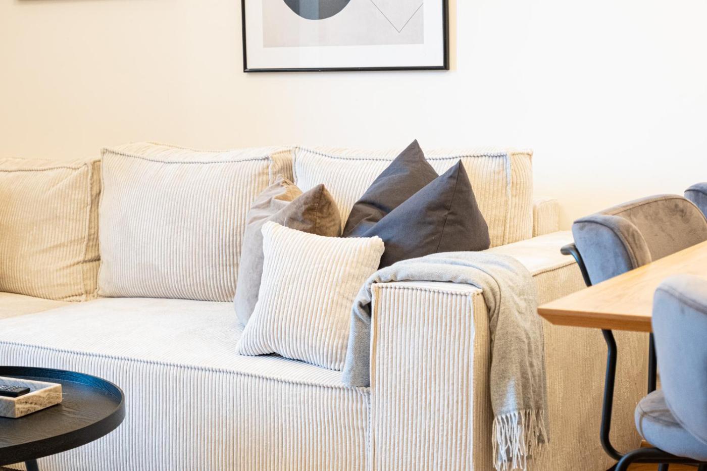 Two-Bedroom Apartment. This spacious apartment includes 1 living room, 2 separate bedrooms and 1 bathroom with a walk-in shower and free toiletries. The fully equipped kitchen has a stovetop, a refrigerator, a dishwasher and kitchenware. The apartment offers a washing machine, a tea and coffee maker, a dining area, a wardrobe, as well as a flat-screen TV. The unit has 3 beds.